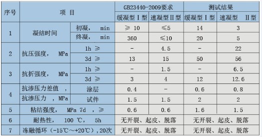 符合GB23440-2009《无机防水堵漏材料》指标要求。